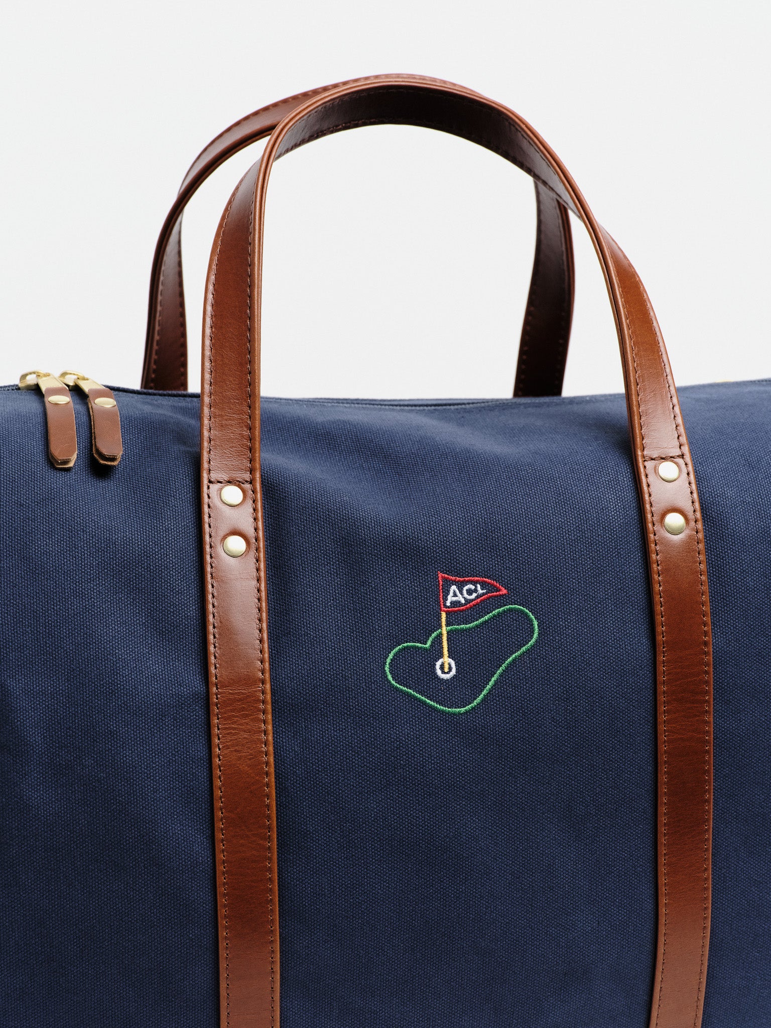 - Navy YKK Zippers, Brass Sliders and Leather Pull