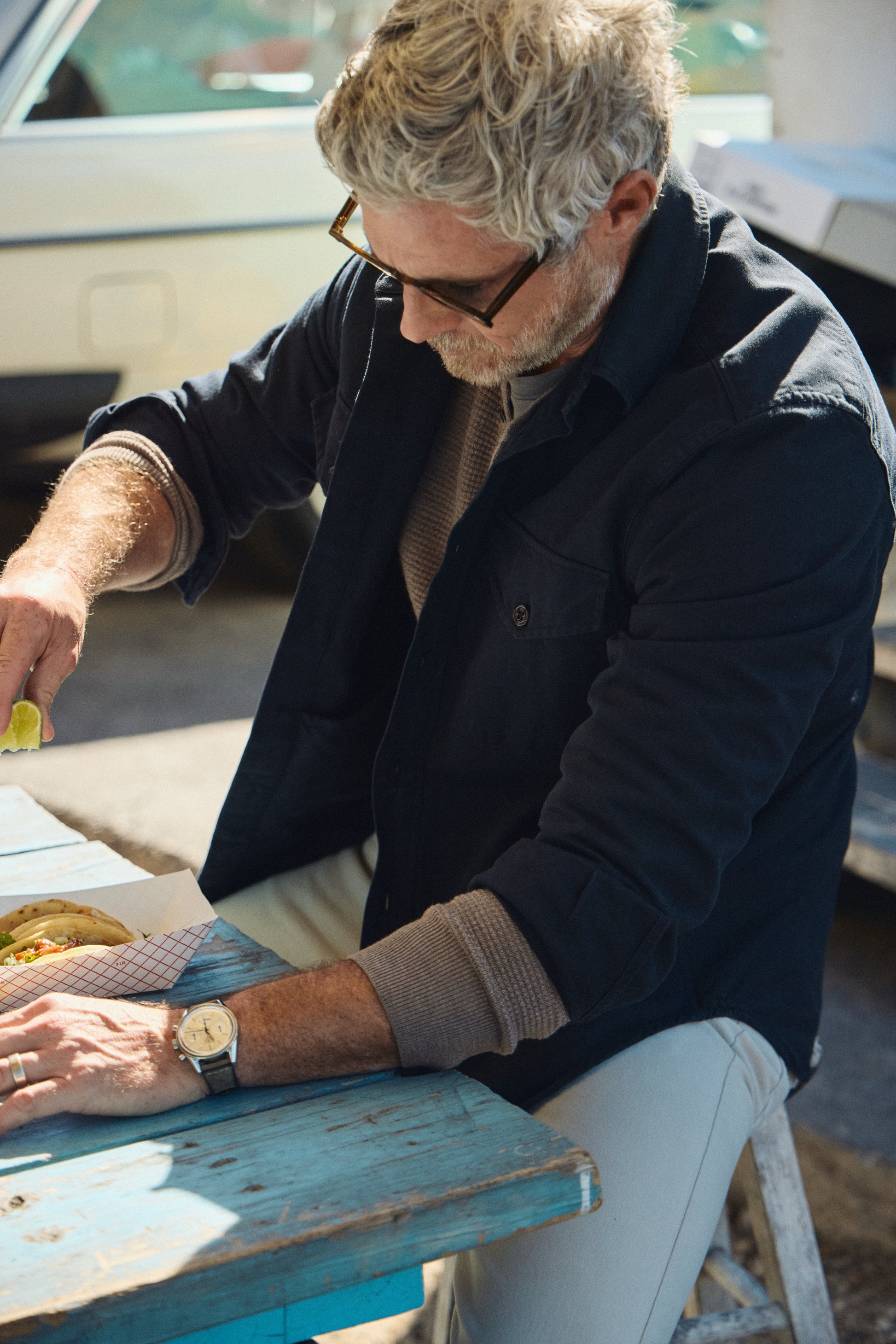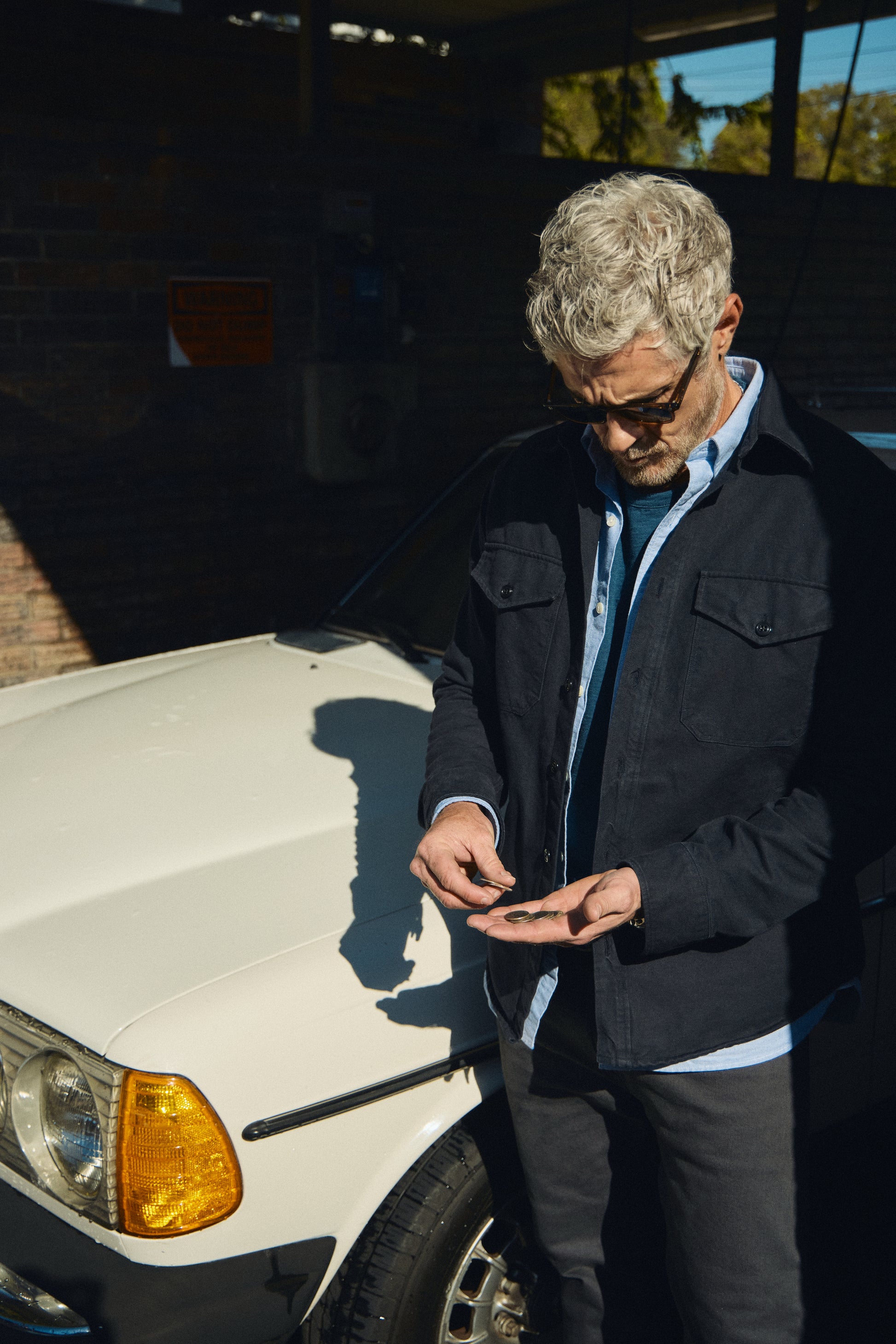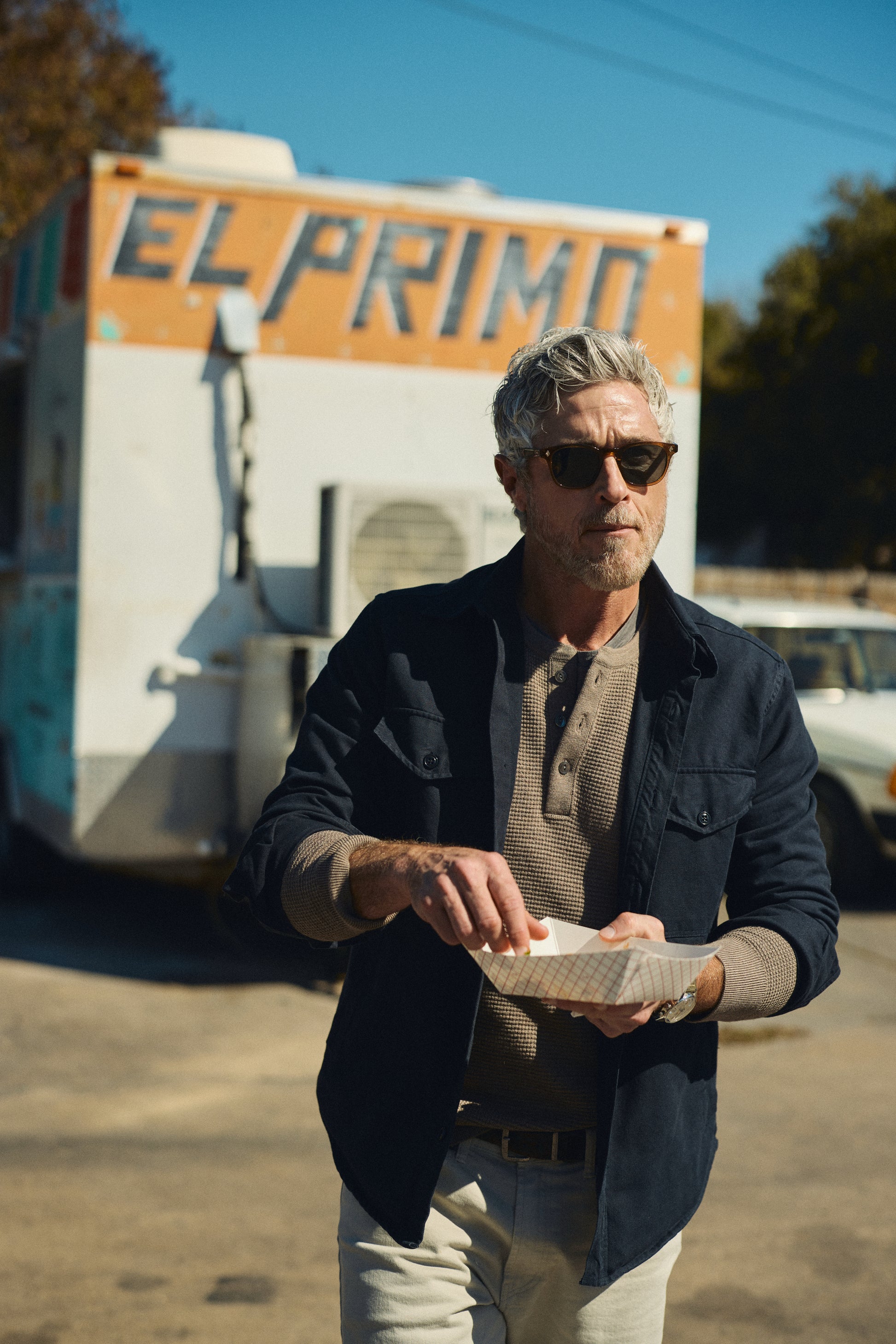 While we were working on this jacket, we were deep in the series Lioness and couldn’t help but notice Dave Annable and his character Neil who runs a tremendously strong dad program. We thought, who could be better to model the Drop Off Jacket? Lucky for us, Dave is one of the greatest guys we have ever met, and he graciously spent the day with us around Austin for the launch of this collab.